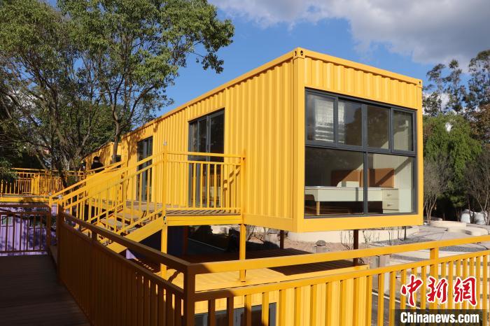 廣東梅州,色彩繽紛的集裝箱被組裝成創意建筑。韓輝 攝