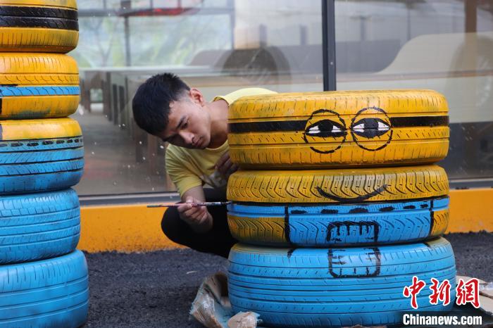 工作人員正在制作彩繪,為項目即將全面開放做準備。韓輝 攝