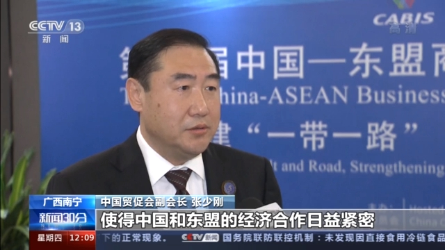 中國貿(mào)促會副會長 張少剛:中國不斷擴(kuò)大的市場規(guī)模,不斷改善的營商環(huán)境,不斷便利的通關(guān)安排,使得中國和東盟的經(jīng)濟(jì)合作日益緊密。
