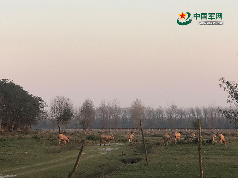 生態園中麋鹿在天鵝湖濕地悠閑地生活。中國軍網記者賀書引 攝