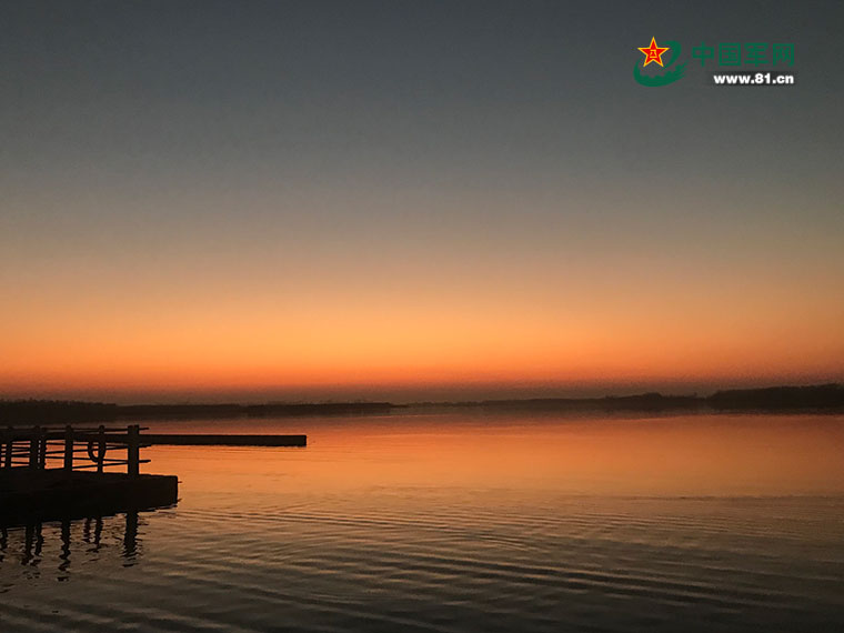 夕陽下的天鵝湖保護區。中國軍網記者賀書引 攝