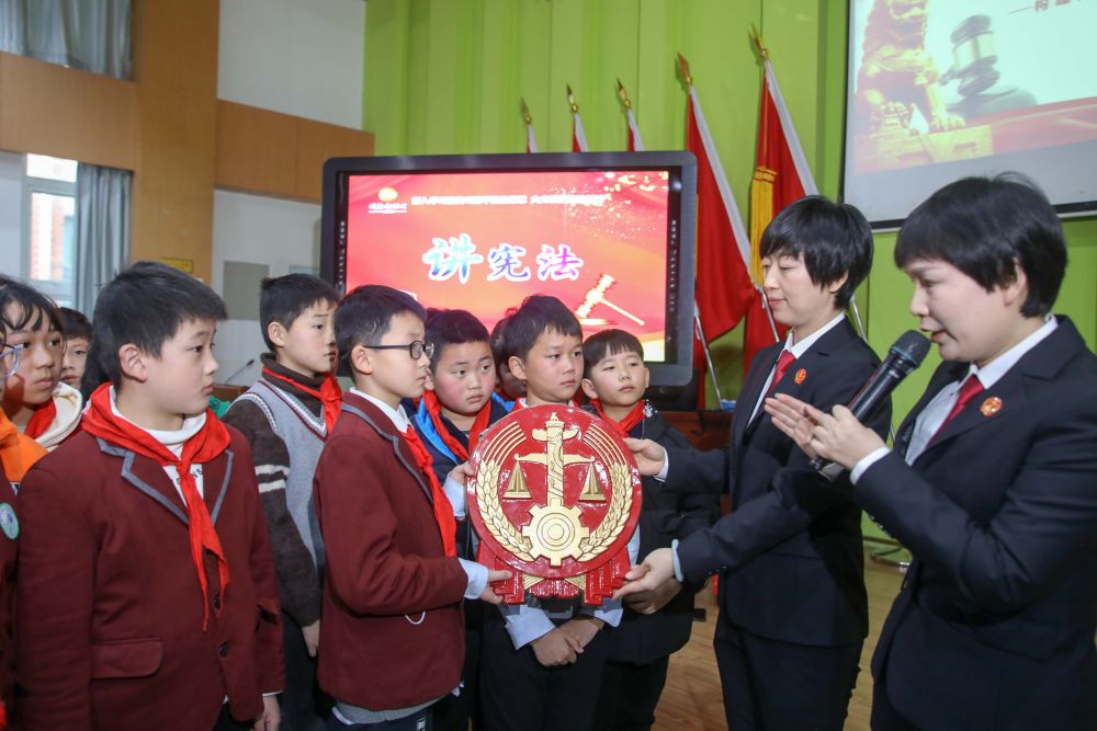 △2020年12月1日,安徽省合肥市濱湖人民法庭的法官走進校園,向學生們展示法徽,介紹其由來及背后的故事。