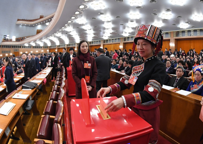 △2018年3月11日,在十三屆全國人大一次會議第三次全體會議上,代表們在投票表決《中華人民共和國憲法修正案(草案)》。