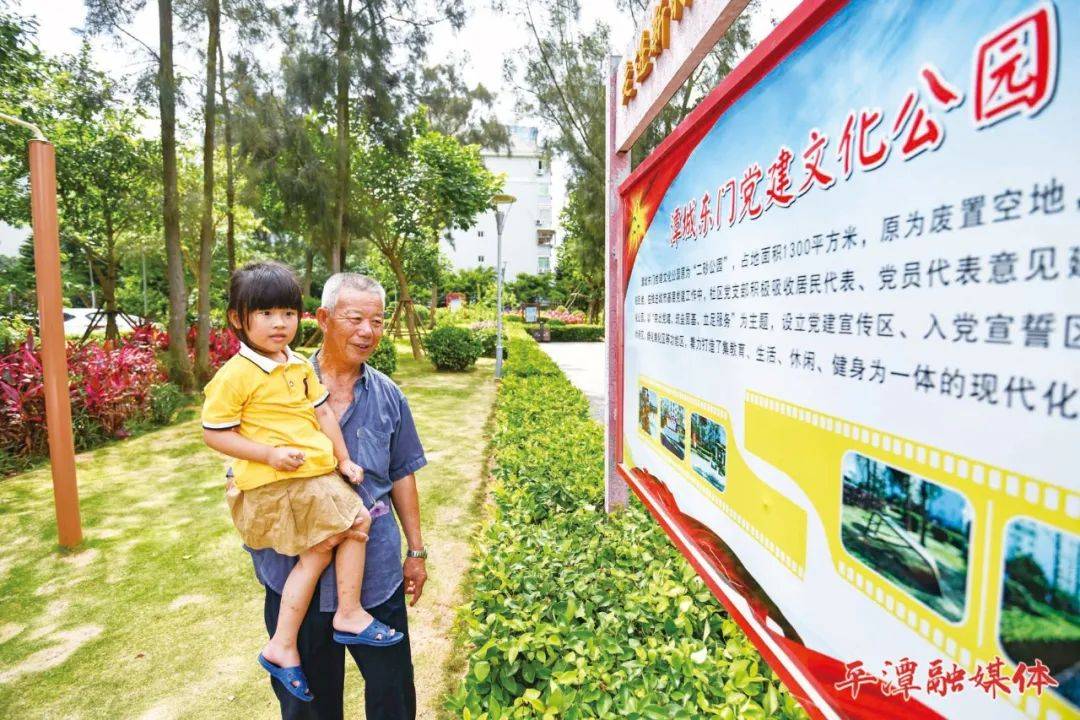 東門社區(qū)黨建公園內(nèi),爺爺帶著孫女了解黨建文化 (資料圖)