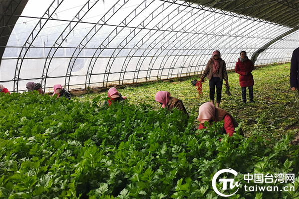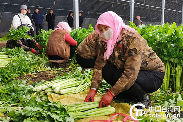 馬虎蘭正在采摘西芹。(中國臺灣網 李寧 攝)