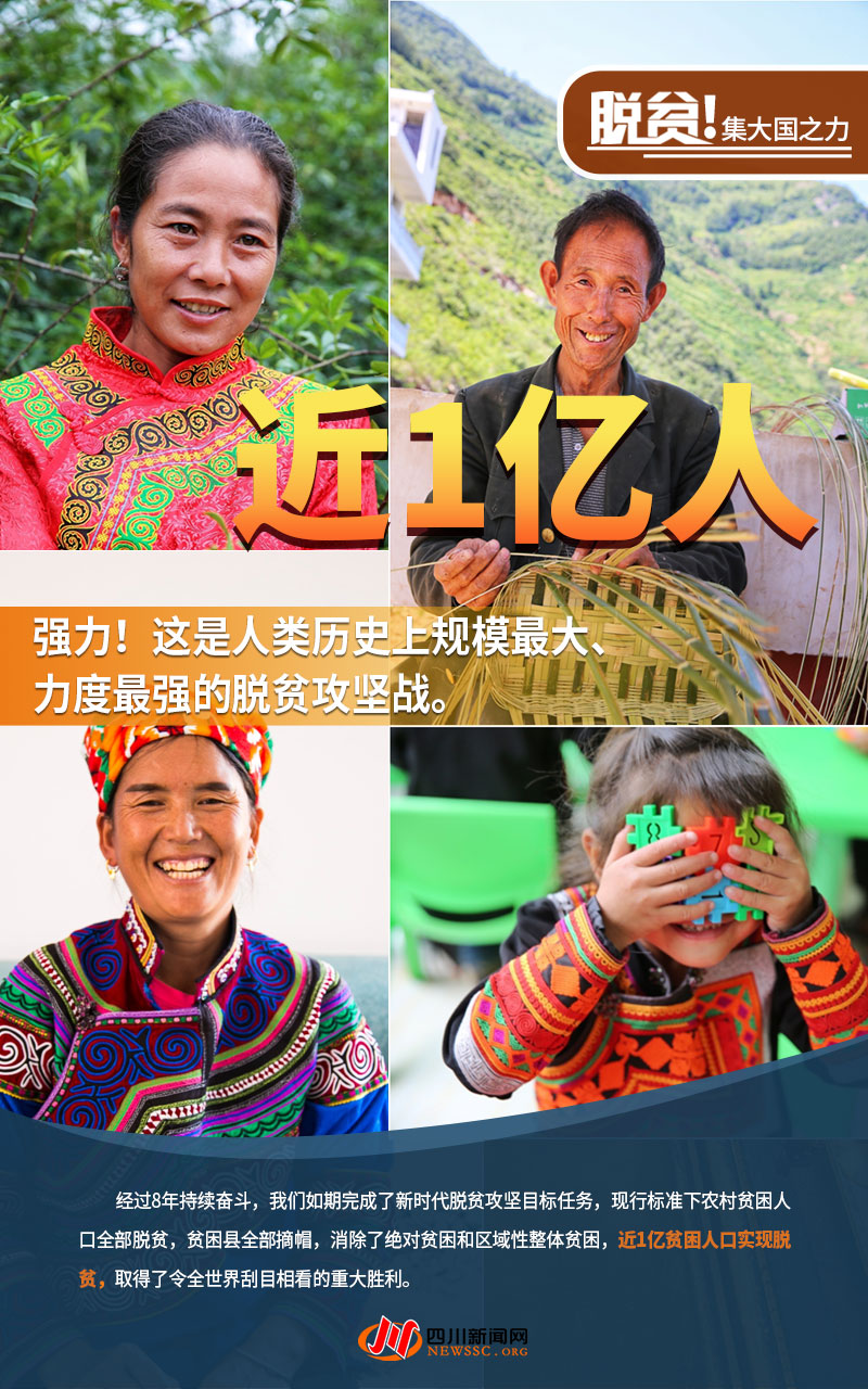 經過8年持續奮斗,我們如期完成了新時代脫貧攻堅目標任務,現行標準下農村貧困人口全部脫貧,貧困縣全部摘帽,消除了絕對貧困和區域性整體貧困,近1億貧困人口實現脫貧,取得了令全世界刮目相看的重大勝利。