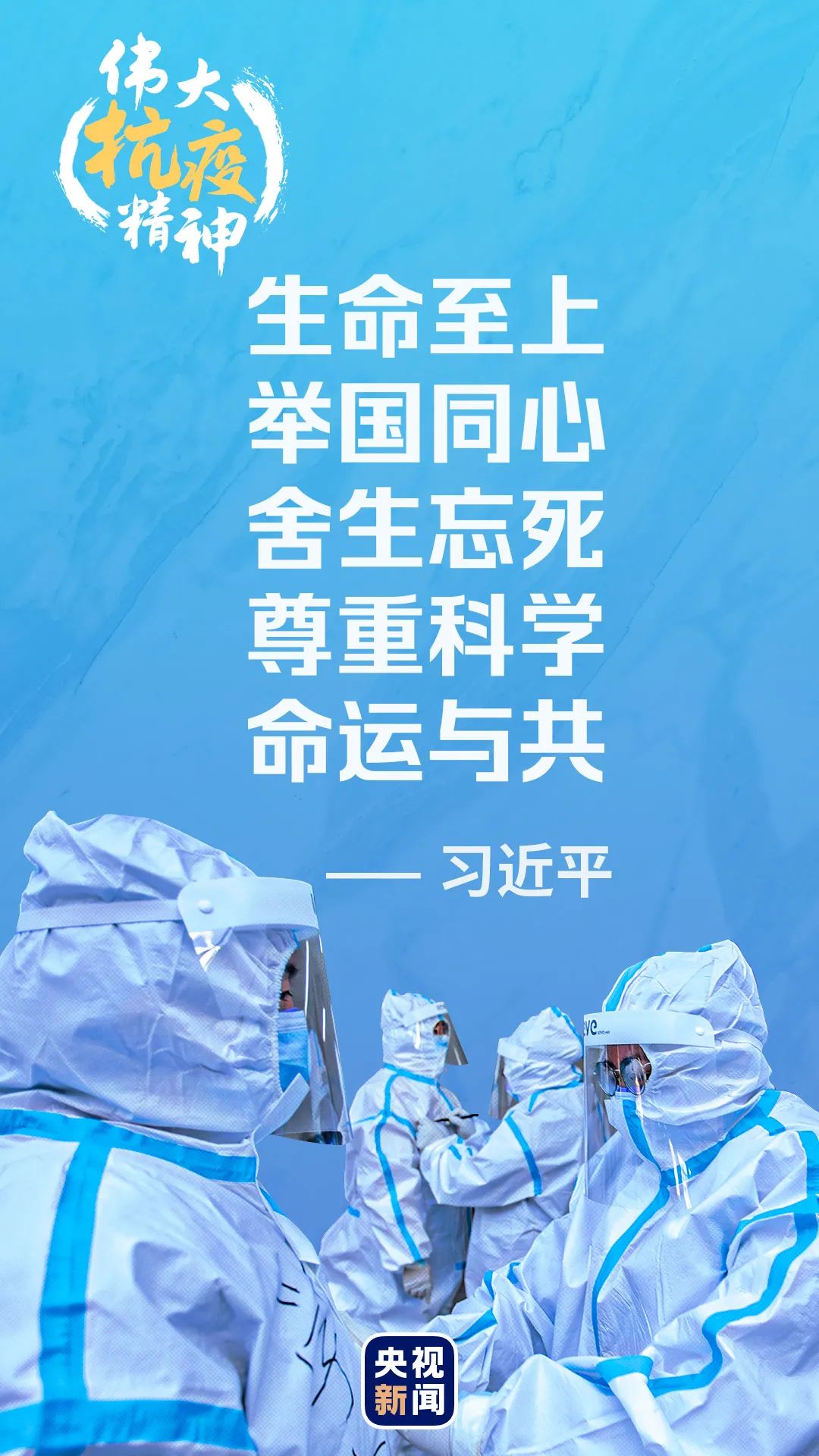 “在這場同嚴(yán)重疫情的殊死較量中,中國人民和中華民族以敢于斗爭、敢于勝利的大無畏氣概,鑄就了生命至上、舉國同心、舍生忘死、尊重科學(xué)、命運(yùn)與共的偉大抗疫精神。”