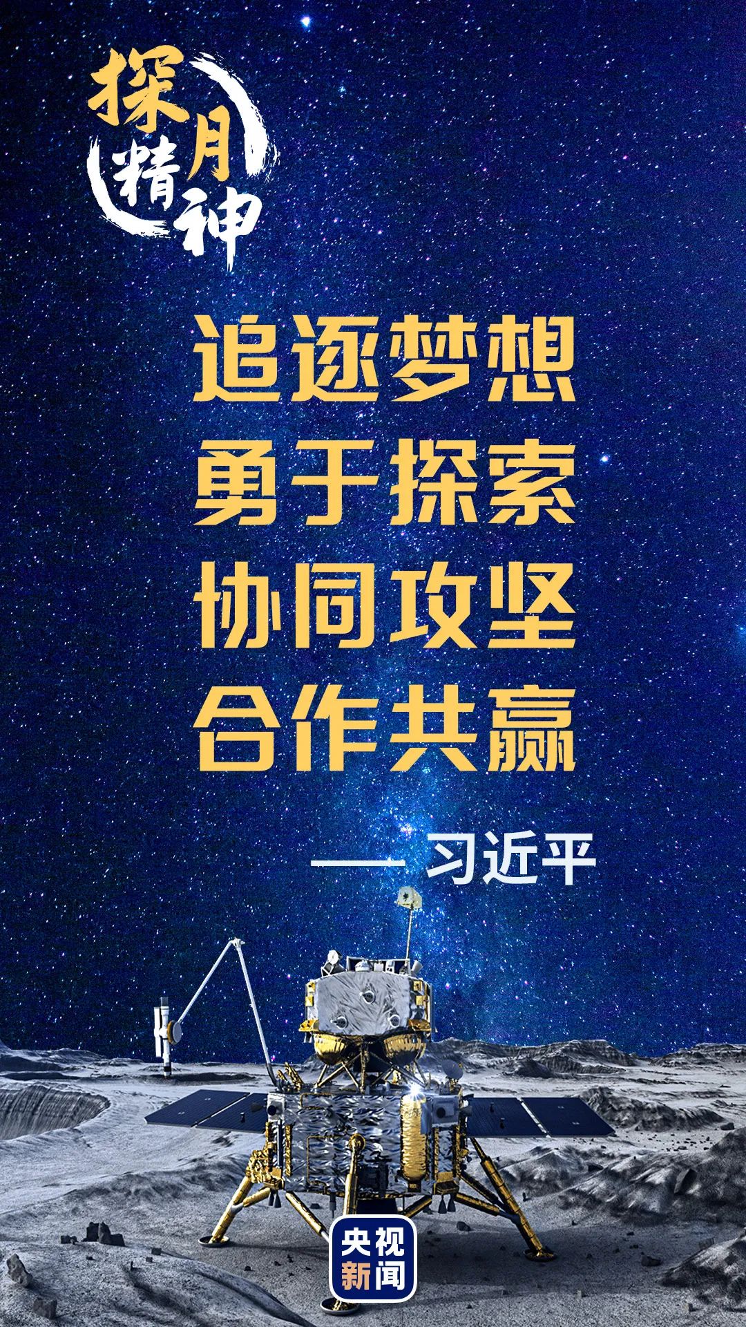 “大力弘揚(yáng)追逐夢想、勇于探索、協(xié)同攻堅(jiān)、合作共贏的探月精神,一步一個腳印開啟星際探測新征程,為建設(shè)航天強(qiáng)國、實(shí)現(xiàn)中華民族偉大復(fù)興再立新功,為人類和平利用太空、推動構(gòu)建人類命運(yùn)共同體作出更大的開拓性貢獻(xiàn)。”