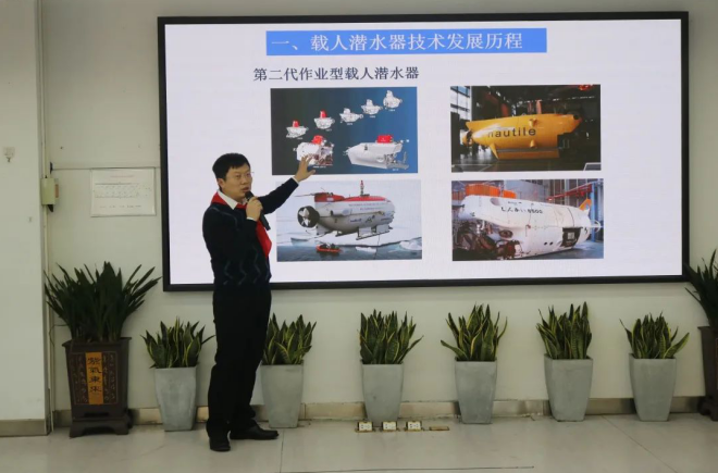 在啟動(dòng)儀式上,楊波通過《載人潛水器》主題講座,向?qū)W生們講述了我國(guó)載人潛水器的發(fā)展歷程,分享了深海勇士在探索深潛的奮斗路上克服困難的種種經(jīng)歷。