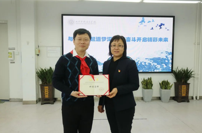 中科啟元學(xué)校黨支部書記王群英向中科院聲學(xué)所研究員、11000米“全海深載人潛水器”副總設(shè)計(jì)師、“載人深潛英雄”楊波頒發(fā)科學(xué)導(dǎo)師聘書。 主辦方供圖
