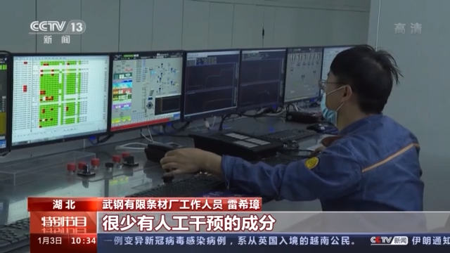 武鋼有限條材廠工作人員 雷希璋:這是我們的操控中心,就是從煉鋼到軋鋼,我們的智慧制造推進(jìn)的情況,目前這個(gè)都是全自動(dòng)控制的,很少有人工干預(yù)的成分。