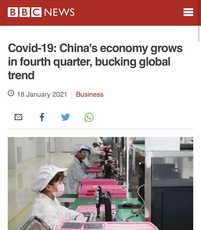英國廣播公司(BBC)網站發表題為《新冠肺炎疫情下 中國經濟2020年第四季度逆勢增長》的報道。
