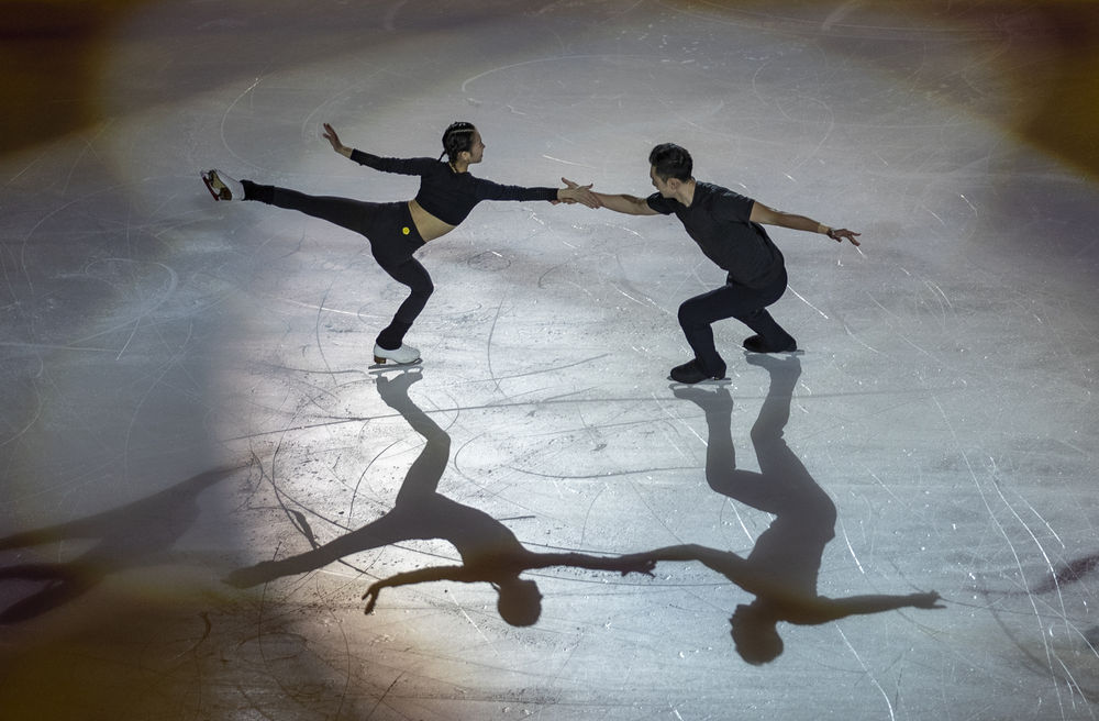 2020年11月8日,中國雙人滑組合彭程(左)/金楊進(jìn)行表演。新華社記者 黃偉 攝