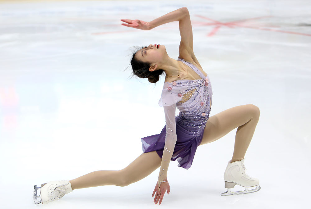 2021年1月1日,花樣滑冰——國家集訓(xùn)隊團(tuán)隊對抗賽在京舉行,圖為“精英隊”選手陳虹伊在女子單人滑短節(jié)目比賽中。新華社記者 雒圓 攝