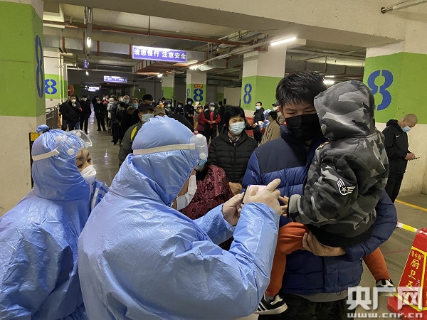 金域藍(lán)灣小區(qū)核酸檢測現(xiàn)場(總臺央廣記者 錢成 攝)