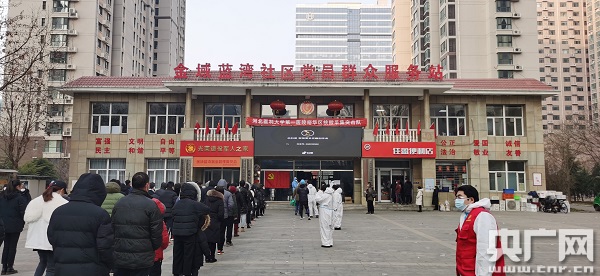 金域藍(lán)灣小區(qū)核酸檢測現(xiàn)場(石家莊臺記者 劉英志 攝)
