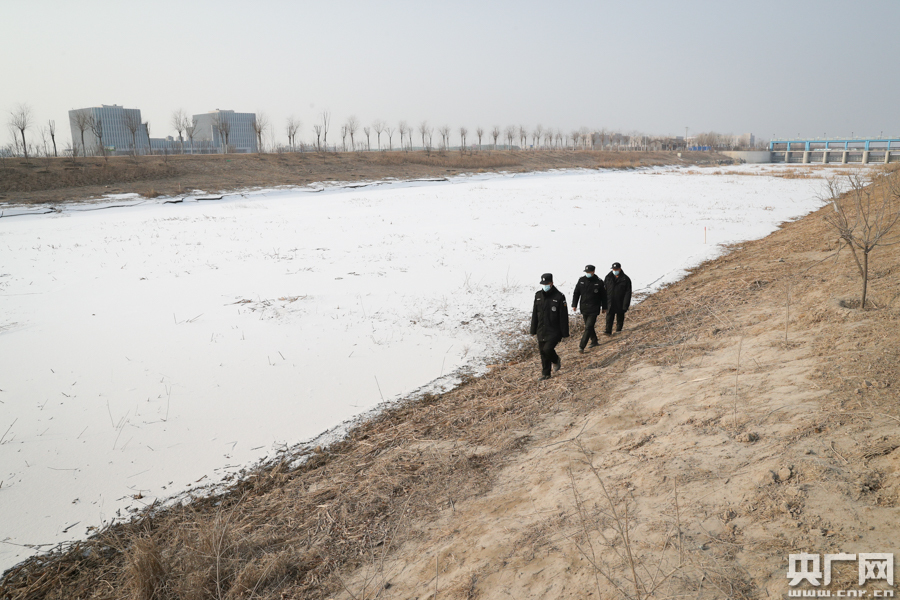 前不久的一場小雪讓永興河的冰面披上了銀裝,1月21日,禮賢鎮(zhèn)綜治辦的梁國東和同事正在河邊巡邏。這條河蜿蜒在北京與河北邊界,禮賢鎮(zhèn)在14公里的流域沿線設有4個卡口,采用物理隔離加人防的模式,按照三班倒進行24小時值守。