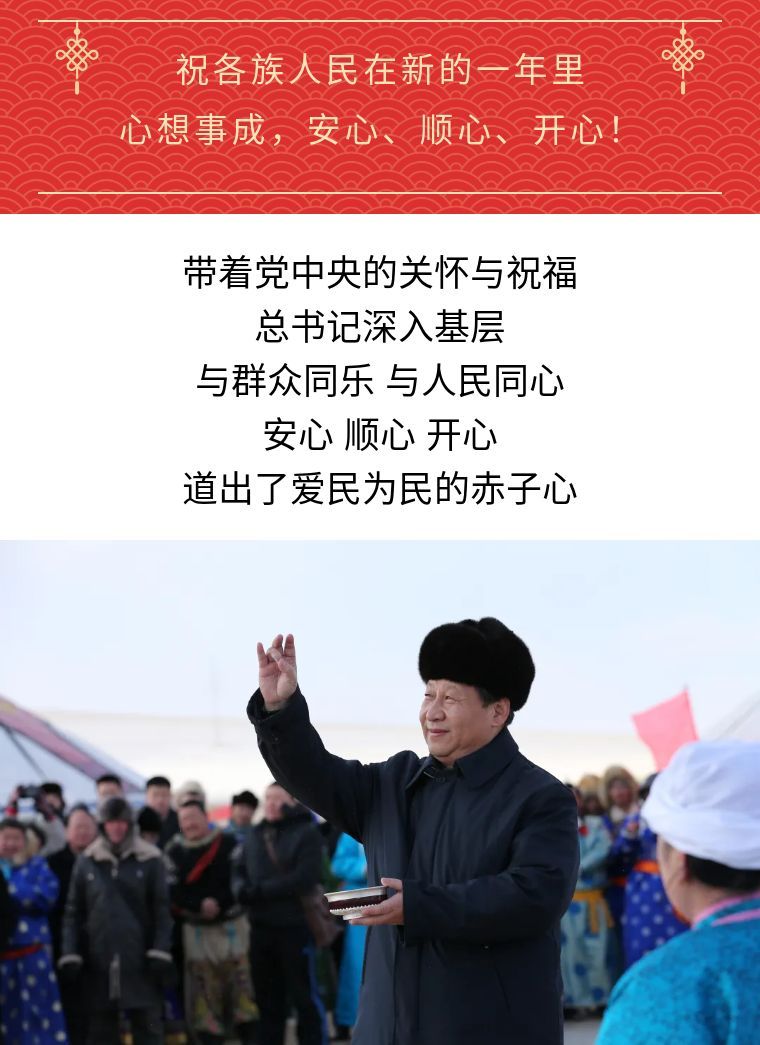 ↑2014年1月27日,在內蒙古錫林浩特市寶力根蘇木(鄉)冬季那達慕“五畜祈福”儀式上,習近平按照蒙古族習俗,用無名指蘸上銀碗盛著的鮮牛奶彈了三下,祝福來年風調雨順,五畜興旺,人民幸福安康。