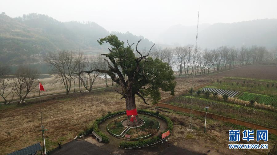 這是1月28日在湖南省張家界市慈利縣溪口鎮樟樹村拍攝的“紅軍樹”(無人機照片)。新華社記者 陳振海 攝