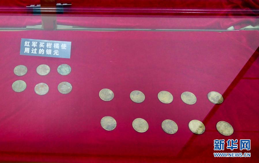 這是1月27日在湖南省張家界湘鄂川黔革命根據地紀念館拍攝的銀元,右下角的十枚是當年紅軍以高于市價支付給菜農的十塊銀元。新華社記者 蘇曉洲 攝