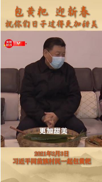 習近平同苗族村民包黃粑迎新春:祝你們日子過得更加甜美