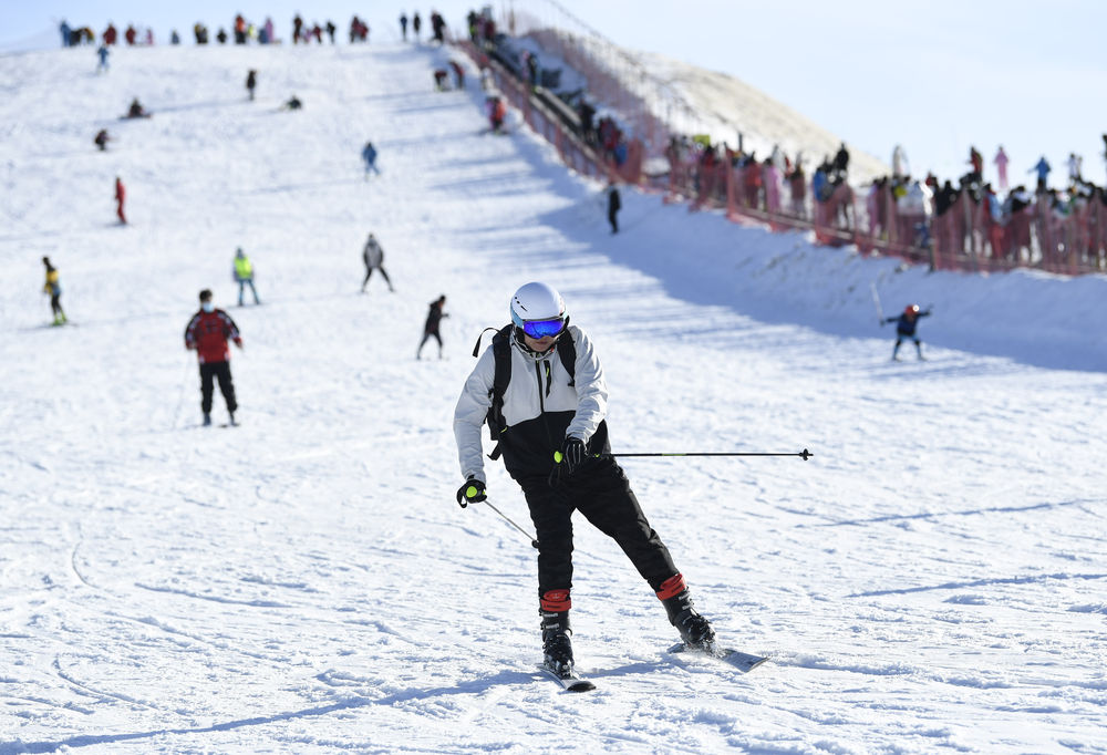 1月30日,市民在寧夏銀川市閱;﹫(chǎng)體驗(yàn)滑雪運(yùn)動(dòng)。