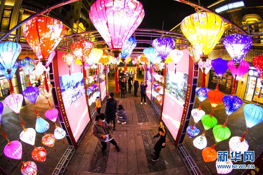 2月7日,市民在浙江省溫州市鹿城區禪街賞燈。