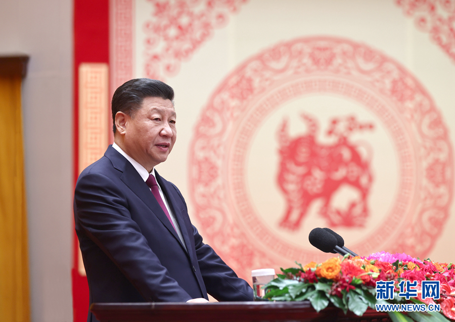 2月10日,中共中央、國務院在北京人民大會堂舉行2021年春節團拜會。中共中央總書記、國家主席、中央軍委主席習近平發表講話。新華社記者 龐興雷 攝