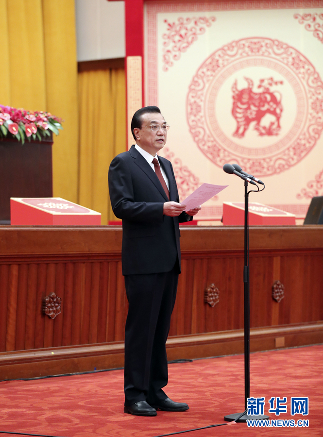 2月10日,中共中央、國務院在北京人民大會堂舉行2021年春節團拜會。中共中央政治局常委、國務院總理李克強主持團拜會。新華社記者 劉衛兵 攝