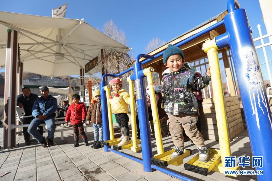 2月5日,在青海省海東市平安區三合鎮的易地搬遷集中安置區,村民們在小區廣場上玩耍。