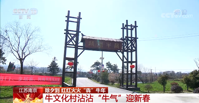 這幾天,以傳承牛文化而聞名的江蘇南京金陵“牛文化村”年味漸濃,金陵牛文化村又名牛落村,一走進(jìn)村口,一處刻有“精耕牛落”字樣的門頭就映入眼簾。廣場(chǎng)上雄壯的牛雕塑迎接著八方來(lái)客,農(nóng)田里盤臥著的金牛像寓意著年年都有好收成。村民院墻上以牛為主題的彩繪也是隨處可見,別有一番風(fēng)情。