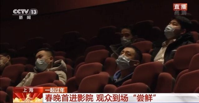 雖然時間尚早,但在現場,已經有一些觀眾早早地來影院報到了。他們有的是留滬過春節的農民工,還有的是受邀出席的上海醫護人員。按照防疫要求,今晚,共有50位幸運兒坐在這個影廳看春晚。