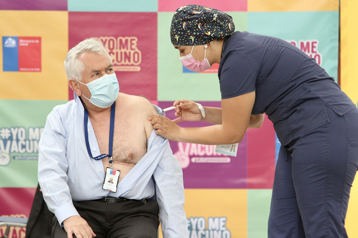 同一天,智利衛生部長帕里斯在首都圣地亞哥也接種了中國新冠疫苗。