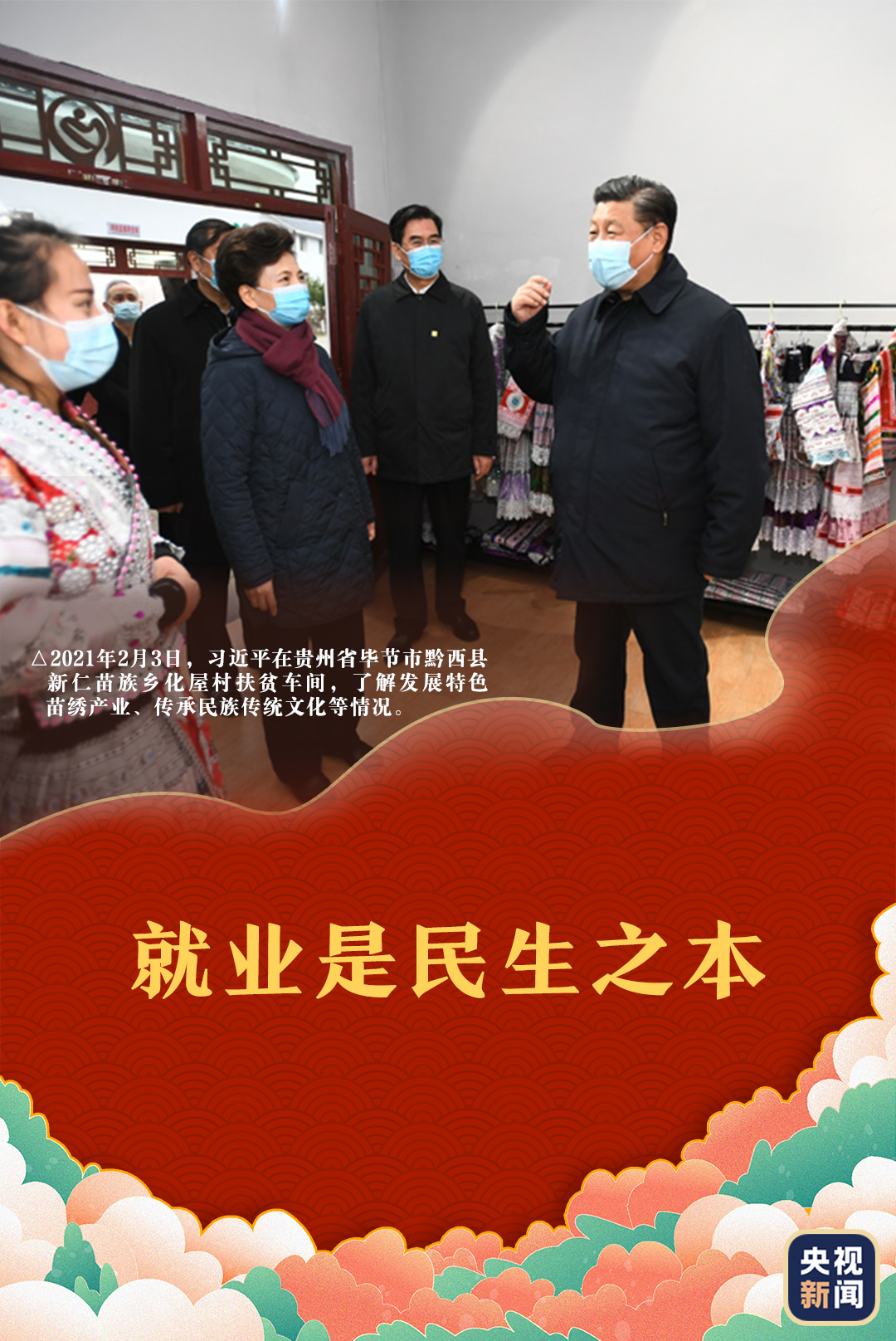 在畢節(jié)市黔西縣新仁苗族鄉(xiāng)化屋村扶貧車間,蠟染師彭藝向總書記講述了自己研究生畢業(yè)后選擇回鄉(xiāng)創(chuàng)業(yè)的心聲:“我選擇回到村里創(chuàng)業(yè),就是要帶動(dòng)鄉(xiāng)親們共同致富。”