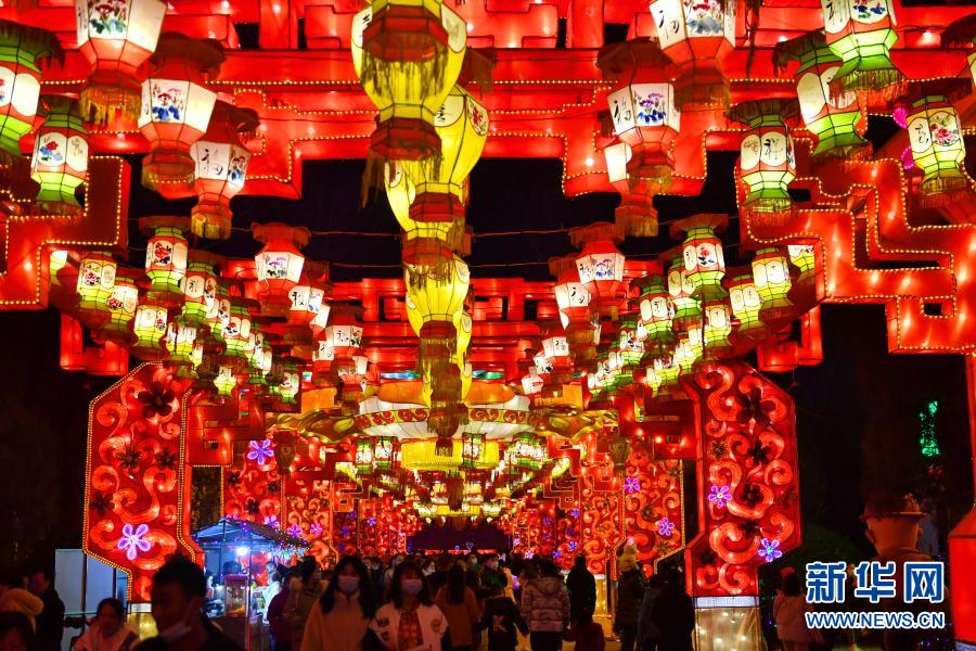春節(jié)期間,山西省汾陽市賈家莊村民俗廟會(huì)上的近百組花燈流光溢彩,洋溢著濃濃的年味。