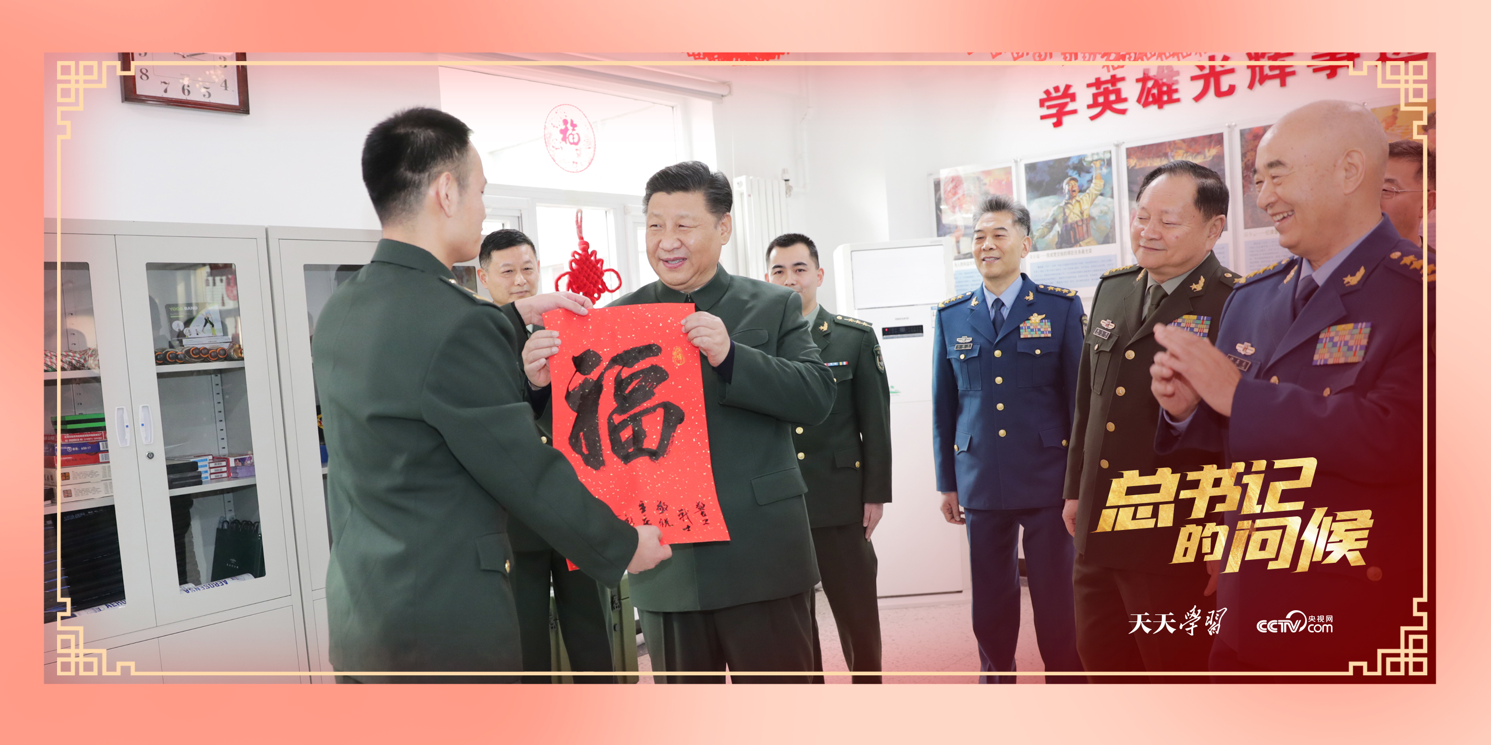 2021年2月,習(xí)近平主席視察空軍航空兵某師,在空勤樓走廊,他親切地和大家交談:“春節(jié)你們休息幾天?”“把生活安排的豐富一點、喜慶一點、熱鬧一點。”……他叮囑各級要全面落實疫情防控要求,合理安排節(jié)日有關(guān)活動,讓官兵在部隊過好年,還不忘送上“牛年吉祥”的祝福。