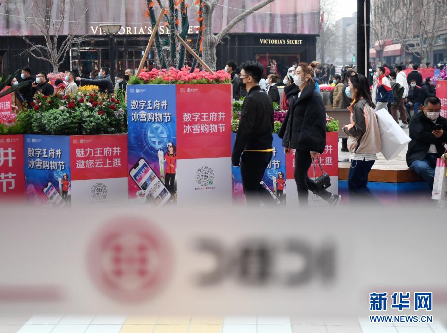 春節(jié)期間,“數(shù)字王府井 冰雪購(gòu)物節(jié)”數(shù)字人民幣紅包試點(diǎn)活動(dòng)在王府井大街進(jìn)行(2月12日攝)。新華社記者 張晨霖 攝
