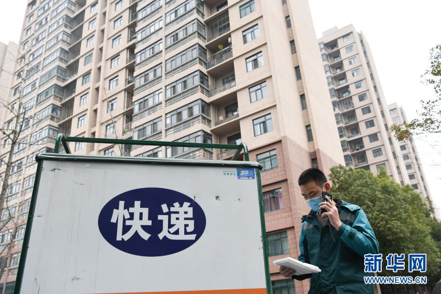 2月11日,中國(guó)郵政攬投員劉元元在安徽省合肥市青陽(yáng)路社區(qū)一處居民小區(qū)內(nèi)派送快遞。新華社記者 張端 攝