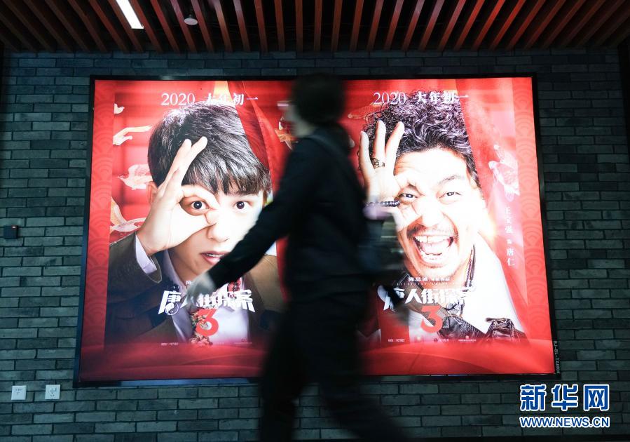 2月17日,在北京前門的保利國(guó)際影城,觀眾從《唐人街探案3》海報(bào)前走過(guò)。新華社記者 陳鐘昊 攝
