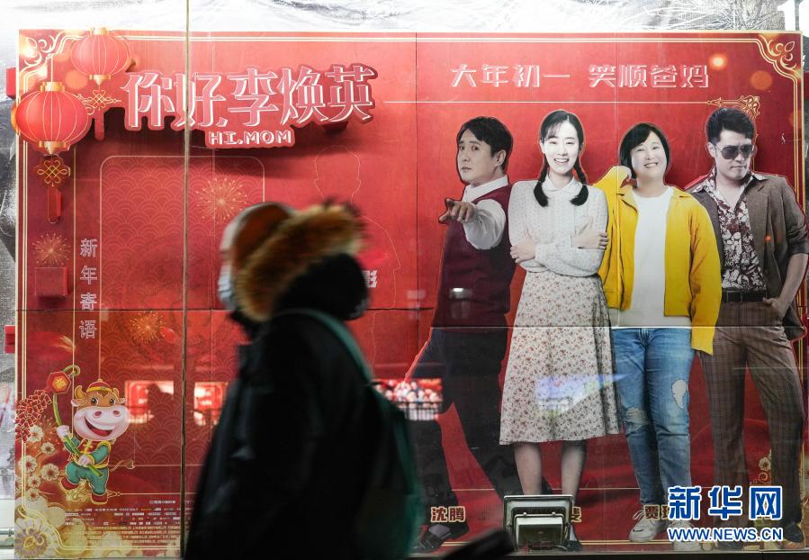 2月17日,在北京的中影國(guó)際影城外,市民從電影《你好,李煥英》海報(bào)前走過(guò)。新華社記者 陳鐘昊 攝