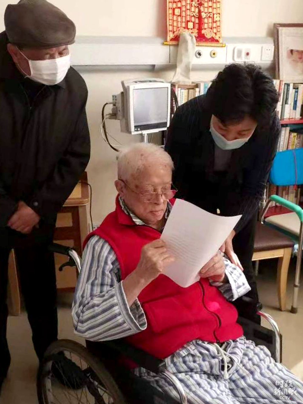 △2月18日,習近平總書記給上海市新四軍歷史研究會的百歲老戰士們回信,感佩他們期頤之年仍心系黨史宣傳教育。新四軍老戰士施平是40余位寫信人之一。(上海市新四軍歷史研究會供圖)