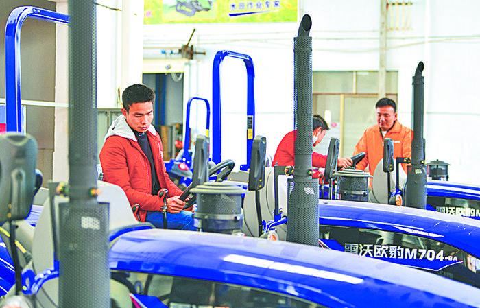 上圖 2月18日,位于安徽省合肥市肥東縣撮鎮鎮的安徽一元菜生態有限公司蔬菜基地內,工人忙著采收、搬運蔬菜。阮雪楓攝 左圖 2月18日,江西省贛州市章貢區華星源農機有限公司,農戶正在選購農機。胡江濤攝