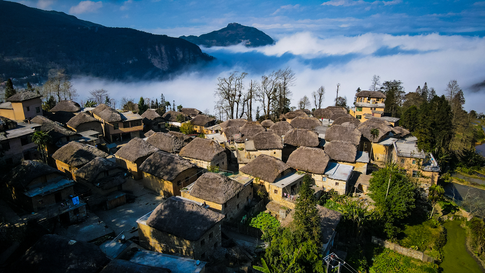 傳統村落承載著中華民族的歷史記憶,寄托著中華兒女的鄉愁。圖為2020年12月17日航拍的云南省元陽縣哈尼族傳統村落阿者科村。 人民圖片 龍俊/攝