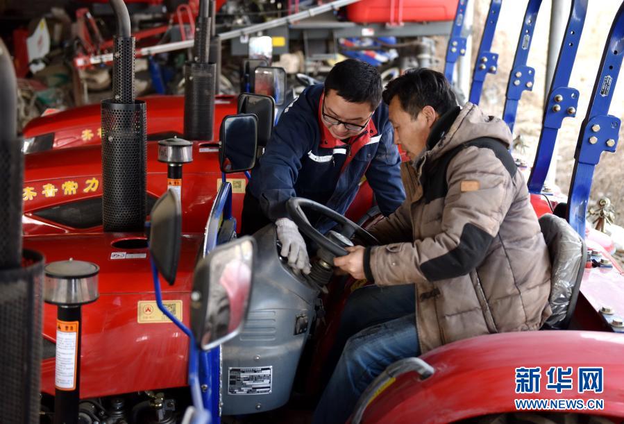 3月3日,河北省阜城縣農民在一家農機公司選購農機。