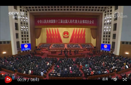 第十三屆全國人民代表大會第四次會議5日上午在人民大會堂開幕。
