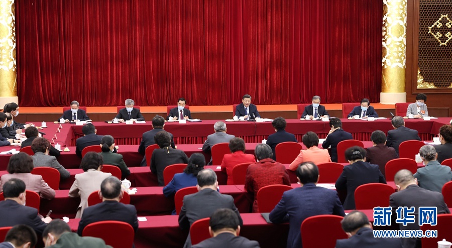 3月6日,中共中央總書記、國家主席、中央軍委主席習近平看望參加全國政協十三屆四次會議的醫藥衛生界、教育界委員,并參加聯組會,聽取意見和建議。中共中央政治局常委、全國政協主席汪洋參加看望和討論。新華社記者 鞠鵬 攝
