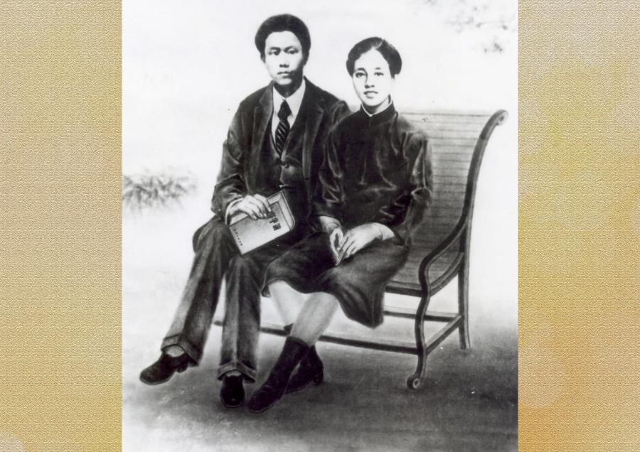 拍攝結婚照時,這對革命伉儷相依而坐