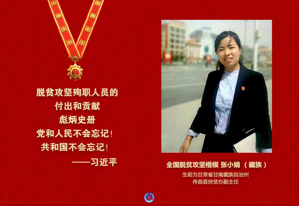 張小娟同志是在習(xí)近平新時代中國特色社會主義思想指引下成長起來的優(yōu)秀共產(chǎn)黨員,是在脫貧攻堅一線不懈奮斗的優(yōu)秀青年干部。2019年10月7日,在舟曲縣貧困鄉(xiāng)鎮(zhèn)脫貧攻堅驗收結(jié)束返回縣城途中因交通事故不幸殉職,年僅34歲。
