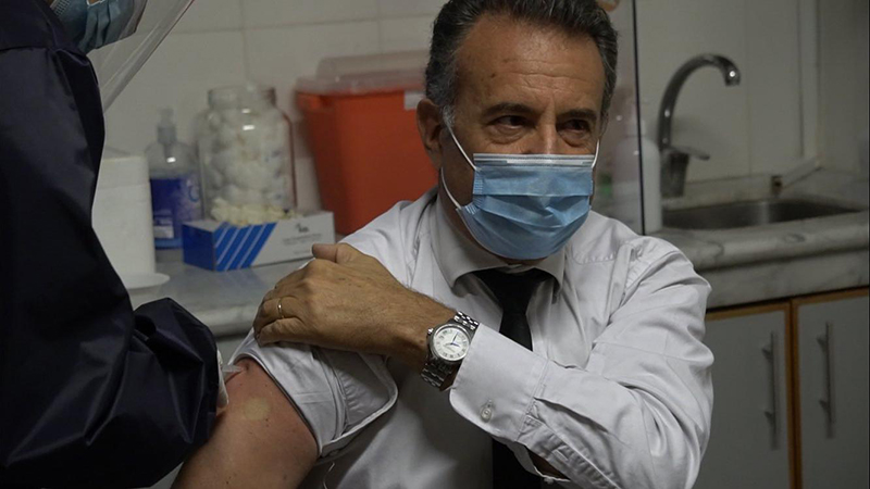 當天上午,烏拉圭衛生部長薩利納斯接種了中國科興新冠疫苗,成為該國政府首位接種中國疫苗的官員。(總臺記者 宮祥誠)