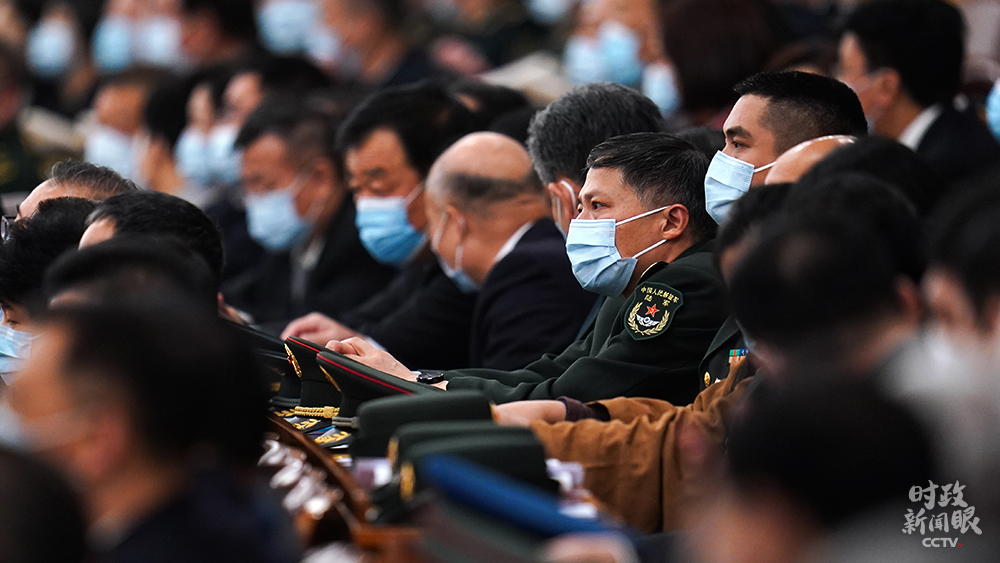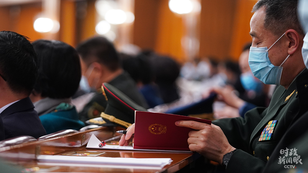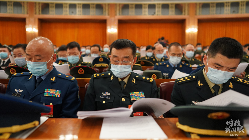△十三屆全國人大四次會議第二次全體會議現場的解放軍代表(總臺國廣記者李晉拍攝)